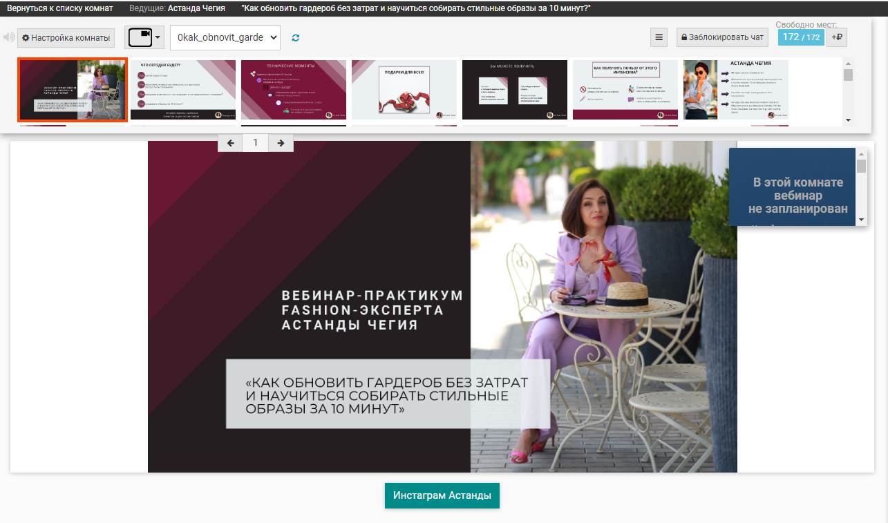 — создание и настройка вебинарной комнаты;